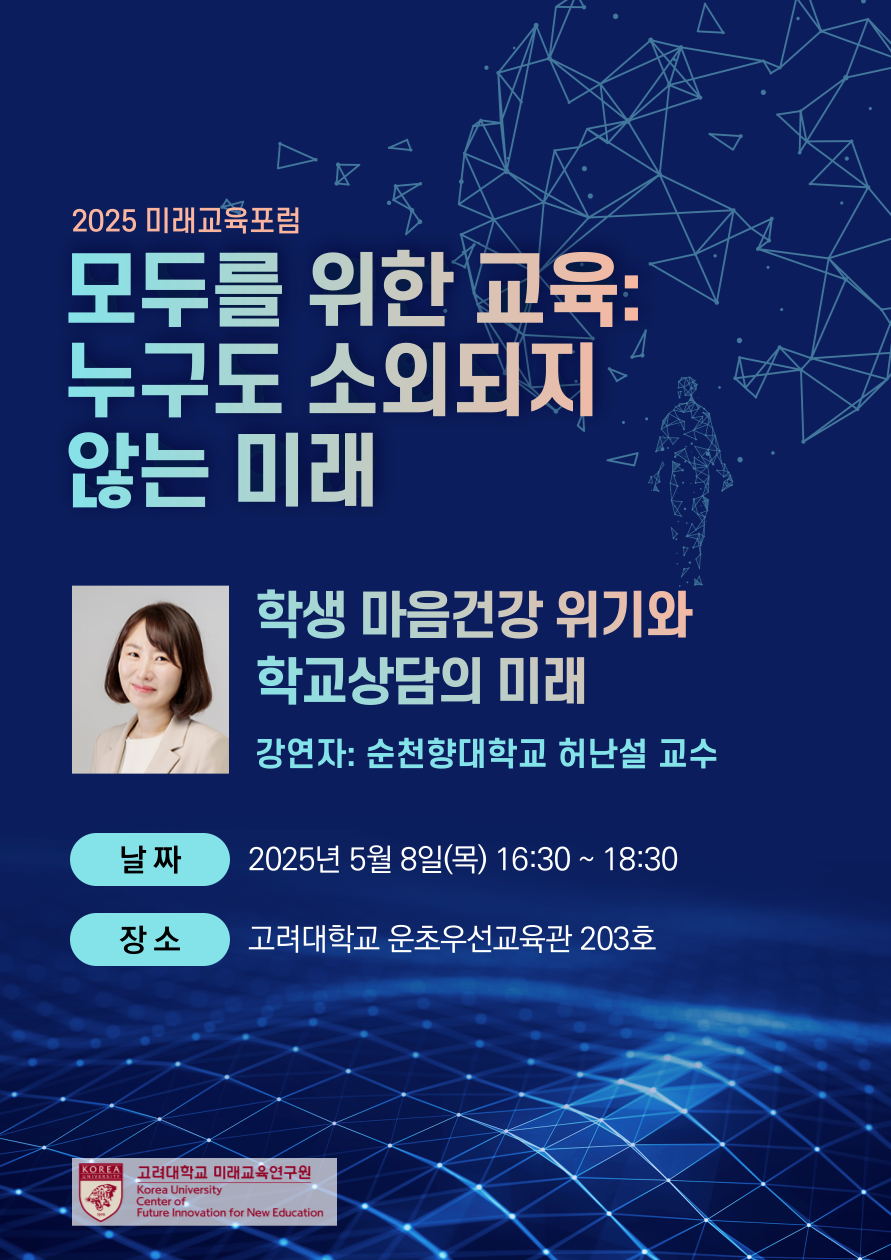 모두를 위한 교육 실현을 위한 학교상담의 역할과 미래를 모색하는 시간입니다.